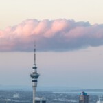 Durch den klaren Himmel machte ich mir für den Abend wenig Hoffnung auf ein schönes Bild der Skyline dennoch machte ich mich zeitig mit meiner Kamera auf um den Mount Eden zu erklimmen. Ebenso wie die restlichen Erhebungen in Auckland ist auch der Mount Eden ein schlafender Vulkan. Dies war aber auch schon auf den ersten Metern erkennbar, bei jedem Schritt wirbelte schwarzer Vulkanstaub herum. Der Mount Eden wird von den Auckländern gerne in deren Freizeit verwendet, vor allem in den kühlen Abendstunden sind hier viele am Joggen, Mountainbiken oder einfach nur zum Picknicken unterwegs weshalb es auf meinem Weg nach oben ziemlich zu ging. Der Aufstieg dauerte keine 30 Minuten und von jedem der vielen Gipfel mit klar erkennbaren trichterförmigen Kratern hatte man einen tollen Ausblick auf die Stadt. Leider war wie vermutet kaum eine Wolke am Himmel, doch genau hinter dem Auckland Sky Tower machte sich kurz vor Sonnenuntergang eine kleine Wolke breit die durch die tief stehende Sonne in sanften Pink angestrahlt wurde und so mein erstes Bild auf diesem Trip perfekt machte.