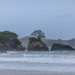Thames war der perfekte Ausgangspunkt für eine Umrundung der Coromandel Halbinsel welche ich im Uhrzeigersinn absolviert habe. Über kurvige und teils sehr steile Straßen ging es um die Halbinsel in die namensgebende Stadt Coromadel. Hier unternahm ich eine witzige Zugfahrt in einer Mini-Eisenbahn die mich auf den Gipfel eines Aussichtsberges brachte. Die Bahn war ein Lebenswerk eines Künstlers der vor allem den örtlich vorkommenden Ton für Töpfereikunstwerke nutzte und auch viele ausländische Künstler einlud um deren Kunst zu fördern. Somit entstand nach und nach ein Berg voller Töpferware durch den die kleine Bahn ca. 1 Stunde fuhr.