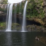 Mein erstes Ziel war Kerikeri, die größte Ortschaft der Gegend. In diesem verschlafenen Nest gab es nicht viel zu entdecken, jedoch war es stets meine erste Wahl wenn es ums Tanken oder Verpflegung ging, da es sonst in der Umgebung nichts gab. Gleich neben Kerikeri bildet der Kerikeri River die Rainbow Falls, ein beeindruckender unterhöhlter Wasserfall, der in einem kleinen von Kiwis bewohnten Wald liegt. Durch die Größe des Wasserfalls hatte ich tatsächlich Probleme ihn komplett ins Bild zu bekommen. Und kurzzeitig bildete sich durch einen Lichtstrahl aus den Wolken auch ein Regenbogen in der Gischt des donnernden Wassers.
