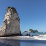 Das Highlight der Coromandel Halbinsel war jedoch die Cathedral Cove an der Ostküste. Ich stand am Parkplatz vor der Wahl eine 2 Stündige Wanderung bei 30 Grad zu unternehmen oder mit einen kleinen Shuttlebus die ersten 1,5h abzukürzen (ich habe mich für letztes entschieden). Ich wurde auf den Klippen abgesetzt und spazierte dann 30 Minuten einen stetig bergab führenden Weg bis zum Strand mit der Grotte hinab. Etliche Touristen hatten an diesem Tag die gleiche Idee und ich befürchtete schon das der Strand mit Touristen überhäuft ist. Als ich dann ankam zerstreuten sich meine Befürchtungen sehr schnell, da der Strand und die Grotte riesig waren (wie eben eine Kathedrale) deshalb gelangen mir mit etwas warten dann auch die besten Fotos auf meinem bisherigen Trip.