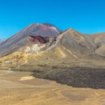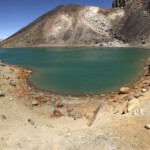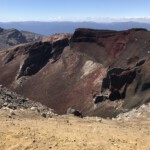 Trotz vieler Bäche und kleiner Flüsschen am Berg gab David uns die Warnung diese nicht als Trinkwasser zu verwenden. Beim Anblick wäre mir dies auch nicht eingefallen. Leuchtend orange und grüne vulkanische Ablagerungen bedeckten das Bachbett und machte so das Wasser ungenießbar. Der steile Anstieg lohnte sich jedoch als ich auf dem höchsten Punkt unter einem großen Stein meine Sandwiches verspeiste, mit einem Panoramablick über die Vulkankegel und Kraterseen des Tongariro National Parks. Besonders imposant und immer sichtbar war der Berg Ngauruhoe der wie ein Bilderbuch-Vulkan alle anderen Berge übertrohnt, nicht zuletzt deshalb hat wohl Peter Jackson diesen Berg als Filmkulisse für den Schicksalsberg in der Herr der Ringe Trilogie gewählt. Ich war also in Mordor angekommen, und mit mir hunderte andere wanderfreudige Touristen.