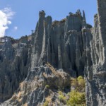 Auf meinem Weg von Napier nach Wellington machte ich in der kleinen Stadt Greytown halt um von dort noch einen Abstecher in den Aorangi Forest und den Putangirua Pinnacles (Felsformation und Drehort der Herrn der Ringe) zu machen. Dafür hatte ich eine Übernachtung in Greytown eingeplant. Abends ging es dann erstmal in das Stadtzentrum des verschlafenen kleinen Dorfes und ich musste feststellen, dass ich mal wieder in einer Geisterstadt gelandet bin. Üblicherweise schließt hier alles nach 5 Uhr und ich hatte deshalb Schwierigkeiten ein Restaurant zu finden. Am Ende habe ich mich für eine kleine Pizzeria entschieden und war von der Pizza positiv überrascht. Am nächsten Tag ging es dann Richtung Wellington mit den erwähnten Abstecher zu den Felsspitzen (welche auch ein Drehort für den Herrn der Ringe waren). Hier gab es eine knapp 2 stündige Wanderung entlang des Flussbettes bis tief in die von Wetter zerklüfteten Felsformationen. Es waren wieder ca. 30 Grad und die Wanderung entsprechend anstrengend da es auf Schotter stetig bergauf ging. Gelohnt hat es sich auf jeden Fall, obwohl das Licht zum fotografieren zu hell war, war die Aussicht beeindruckend obwohl man ständig damit rechnen musste, dass einem ein Stein auf den Kopf fallen könnte. Nach dieser kleinen Wanderung ging es dann der Küste entlang Richtung Wellington.