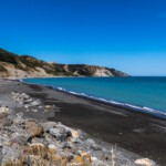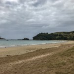 Nach dem Abstieg machte ich mich zu meinem letzten Stop für den Tag auf. Über kurvige und steile Straßen kam ich bei zunehmendem Sturm in der Matauri Bay an. Das aufgepeitschte Meer schlug hier an einen von Klippen eingezwängten weißen Sandstrand. Durch den starken Wind konnte ich meinen Plan, das Rainbow Warrior Memorial auf den Klippen zu besuchen vergessen. Es stürmte so stark, dass sich die Sandkörner auf der Haut wie Nadeln anfühlten. Ich musste mich mit einem Bild der Wellen vor den schroffen Felsen begnügen, bevor ich mich wieder ins Auto flüchtete.